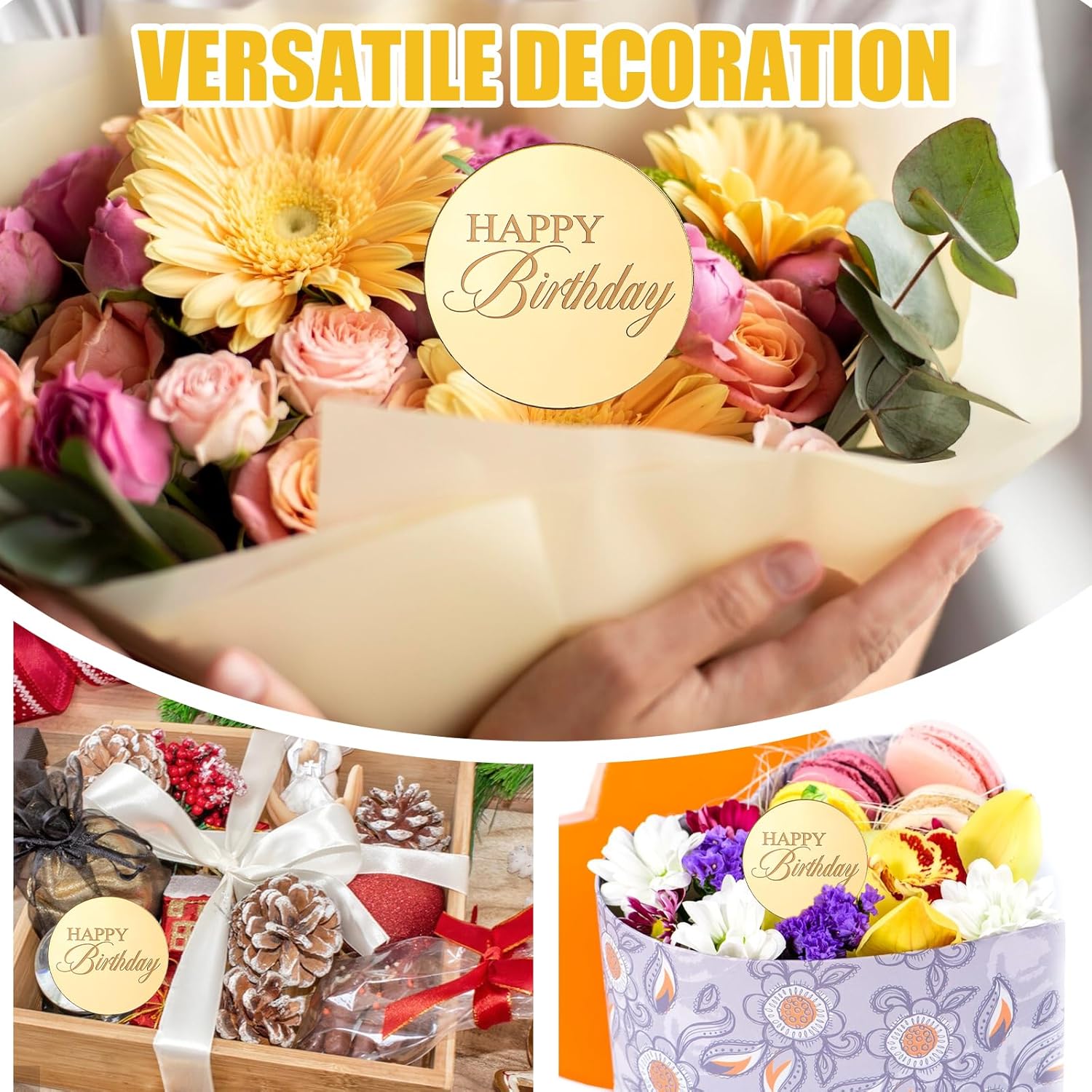 - 【Elegant Visual Enhancement】The gold mirror finish creates a reflective surface that elevates dessert presentations with modern sophistication. The engraved 'Happy Birthday' lettering appears clearly against the glossy background, making these cake decorations visually striking from all angles. This decorative effect transforms ordinary desserts into centerpiece attractions for special occasions
