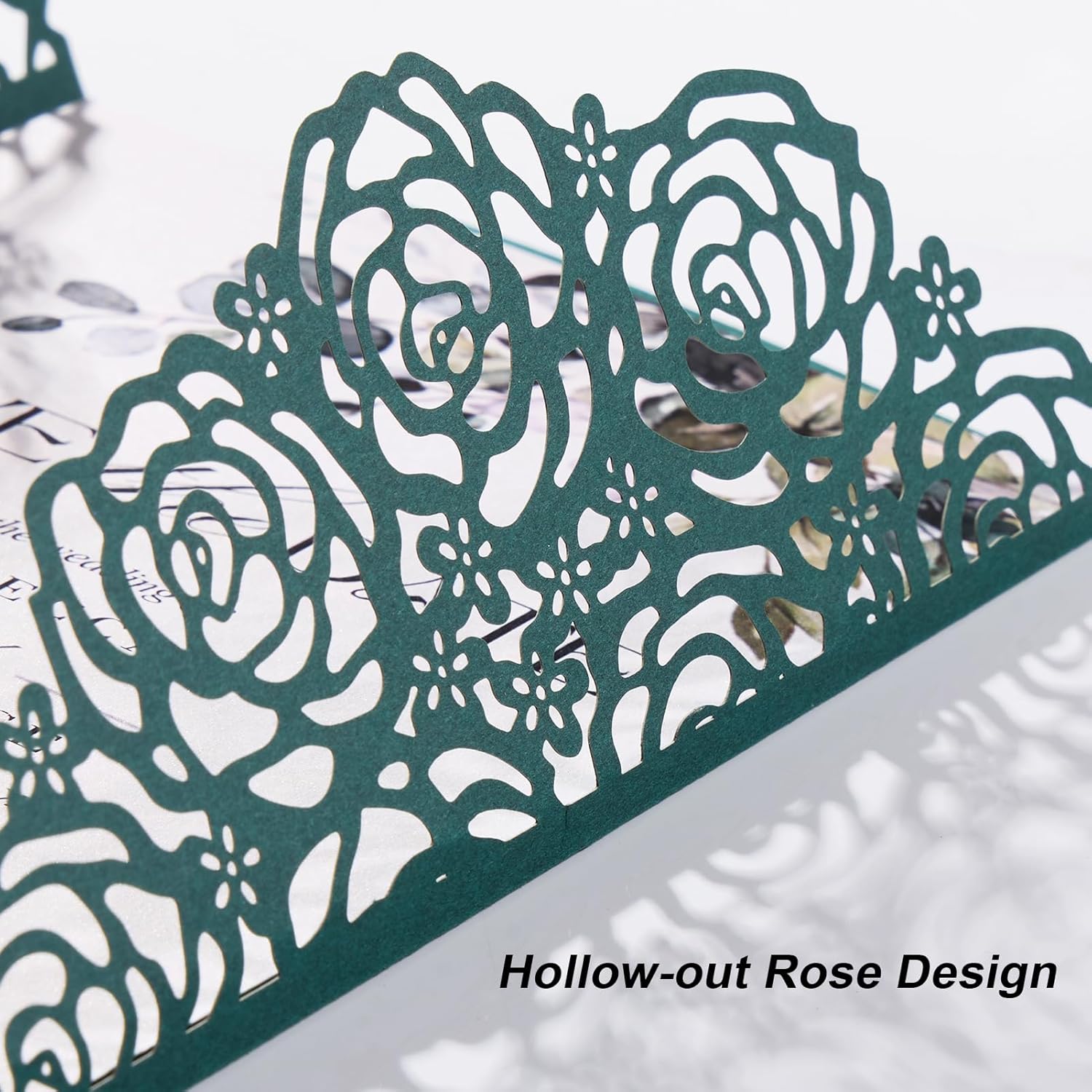 - Wedding Invite Accessories: 50* dark green laser cut invitations pocket, 100*blank inner cards(big&small), 50* butterflies with adhesive, 50 x ribbons, 50 x white envelopes & seal.