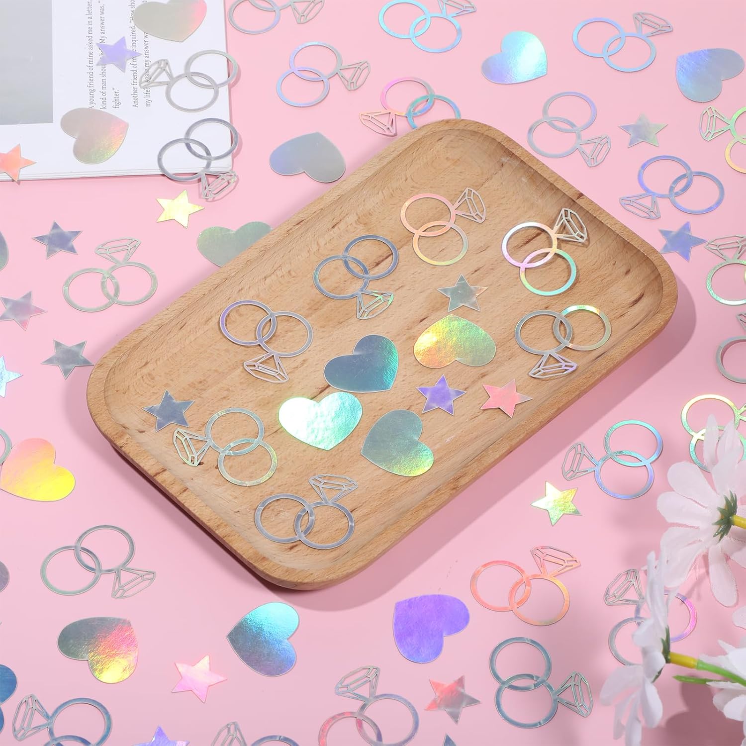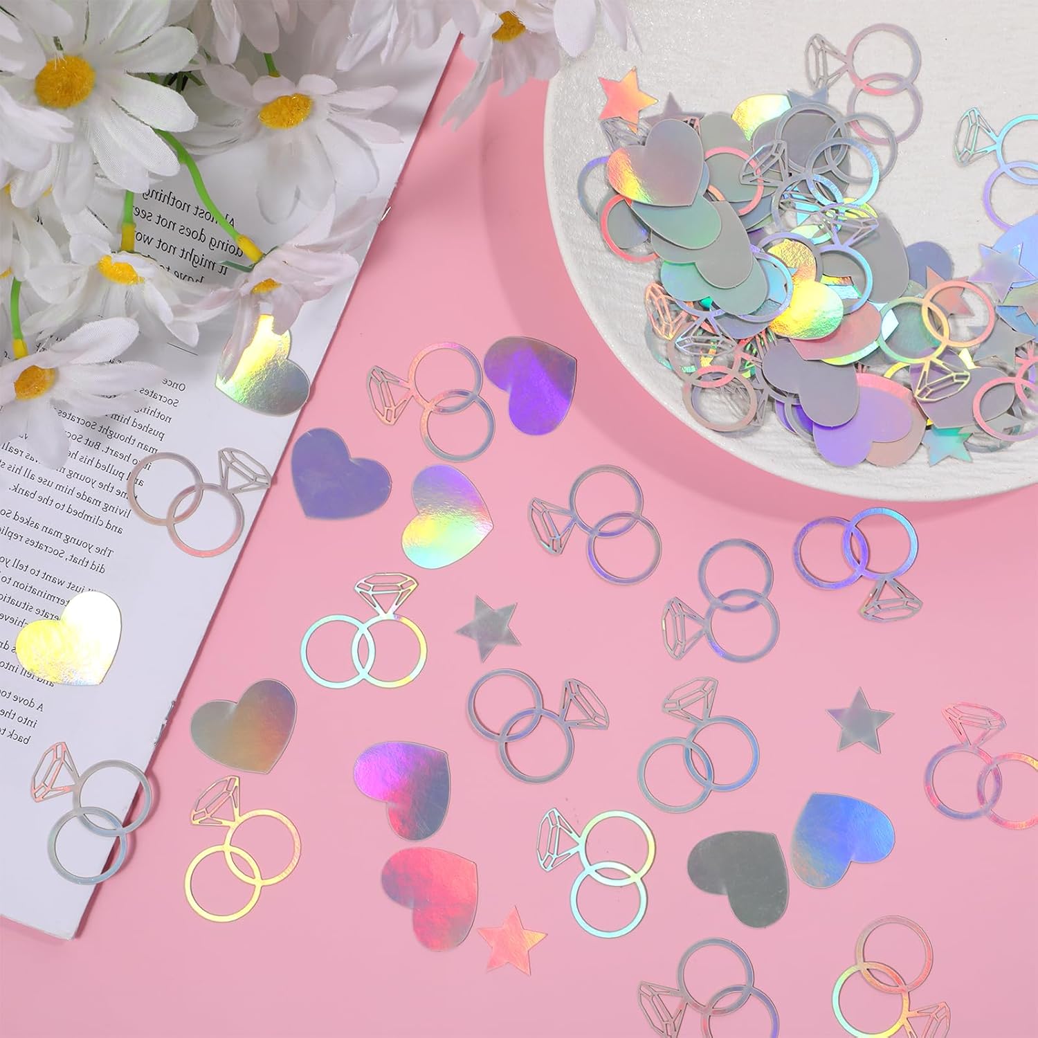 300 Pcs Iridescent Bachelorette Confetti, Bridal Shower Decoration Confettis, Wedding Decorations Diamond Ring Heart Star Table Confetti for Engagement Party Decorations, Bridal Shower supplies
