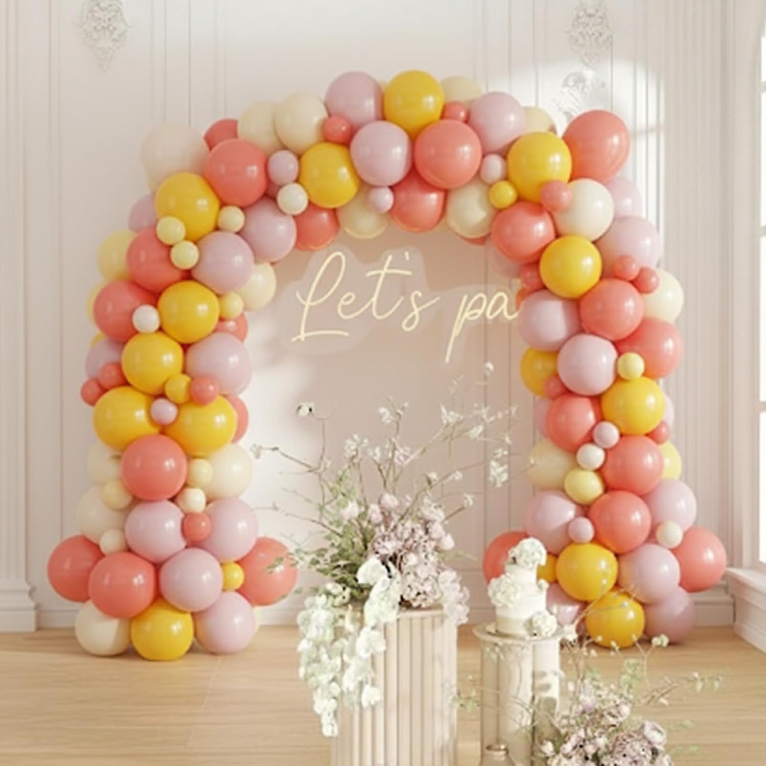 Pink and Yellow Balloon,50PCS 12 Inch Boho Pink Balloons Retro Orange Pastel Pink Yellow Nude Ballons for Girls Birthday Autumn Baby Shower Wedding Engagement Flower Fall Party Decorations