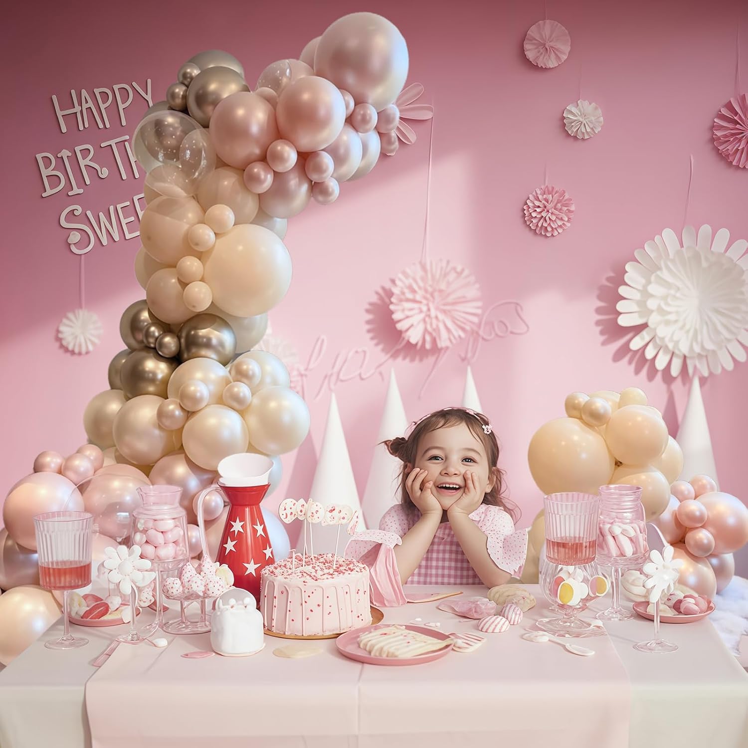 Dusty Pink and Gold Balloon, 12 Inch Double Stuffed Pearl Pastel Blush Pastel Pink Light White Metallic Gold Latex Balloons for Women Girls Birthday Baby Bridal Shower Wedding Boho Party Decorations