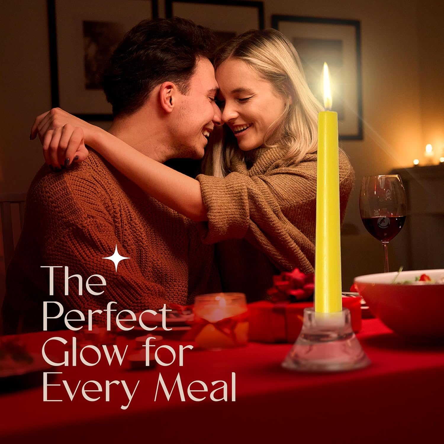 - Secure Fit in Most Holders – With a 0.8” tapered base, these long yellow candles fit most candlesticks securely. They bring stable light to dining tables, outdoor patio dinners, or festive holiday centerpieces.
