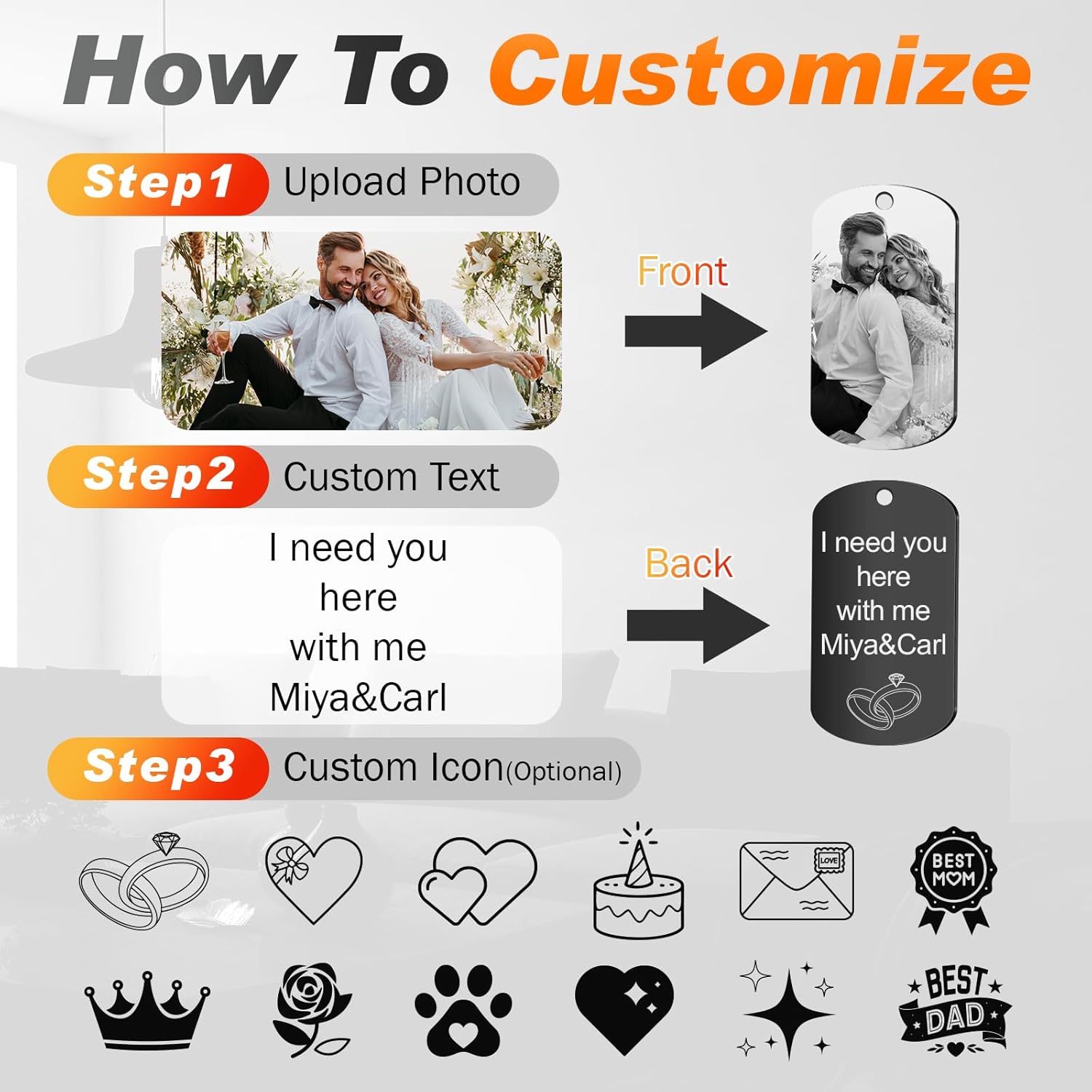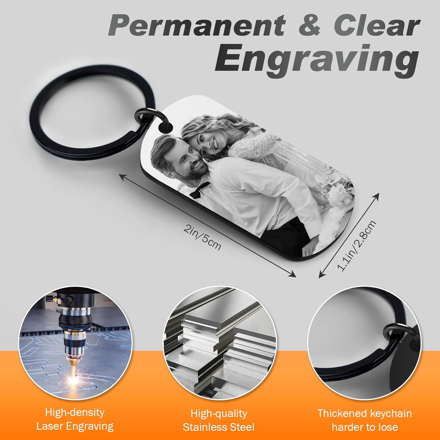 - 🎁【Premium Materials & Craft】:This custom photo keychain is crafted from rust-resistant and deformation-resistant stainless steel, precision-polished and electroplated for a smooth, textured finish. It's also hypoallergenic and scratch-resistant. Using advanced high-precision laser engraving technology, the designs and text are detailed, clear, and permanent, ensuring they remain as good as new even after years of use.