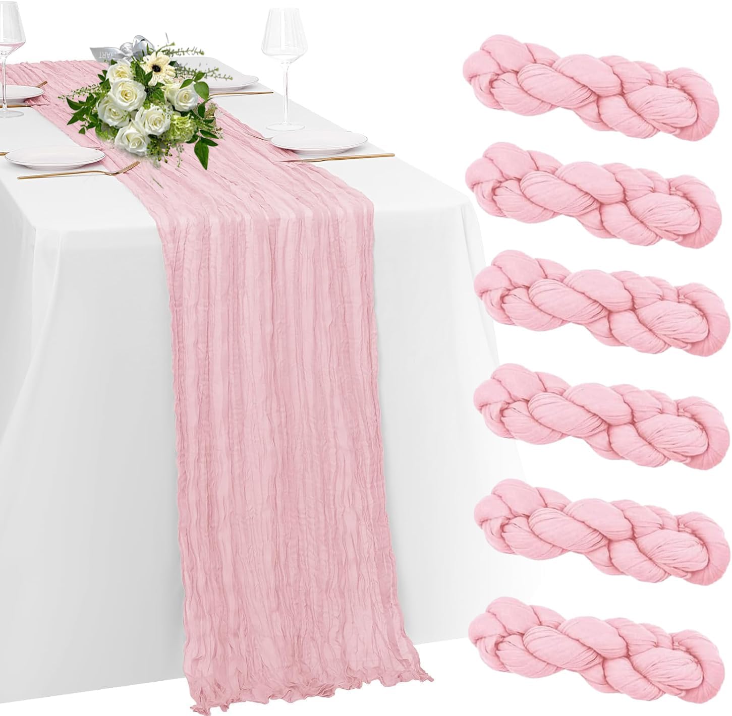6 Pack Light Pink Cheesecloth Table Runner 23x120 inch Rustic Boho Gauze Table Runner 10 FT Long Sheer Cheese Cloth Fabric Table Runners for Romantic Wedding Bridal Shower Birthday Party Decor