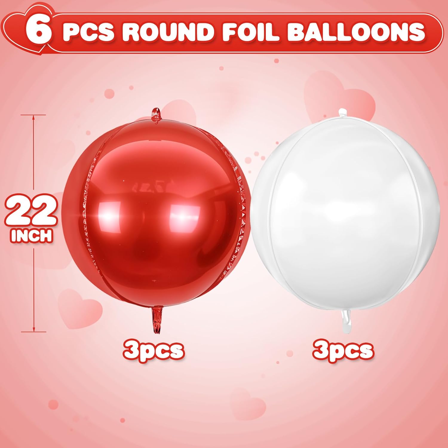 6Pcs Red White Round Foil Balloons,Giant 4D Round Ball Balloon,22 Inch Balloons for Mother's Day, Valentine's Day, Birthday, Wedding, Christmas Party Decorations