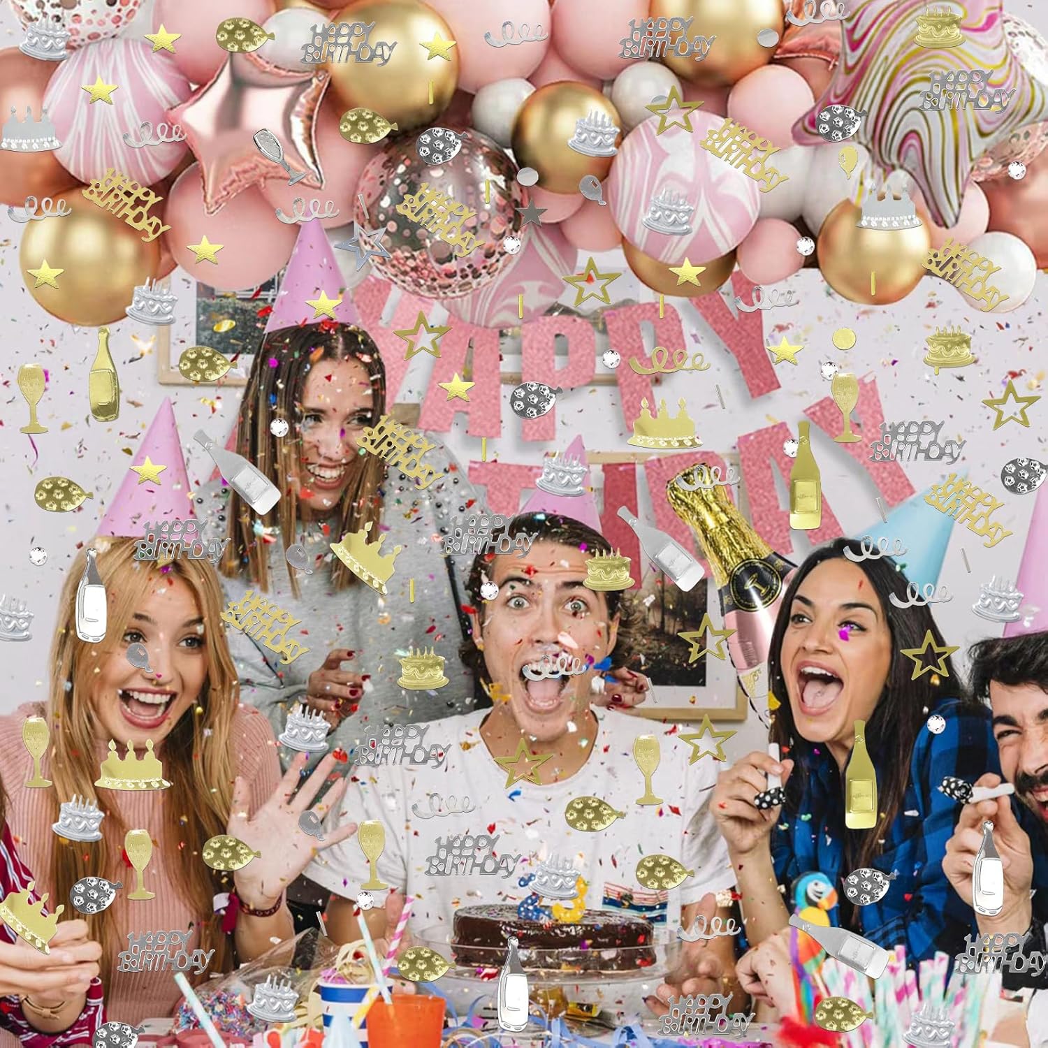 VHUWE Happy Birthday Confetti, 1.6 oz Champagne Gold Silver Cake Balloon Star Goblet Bottle Swirl Glitter Confetti for Boys Girls Kids Women Men Happy Birthday Party Table Decorations Supplies