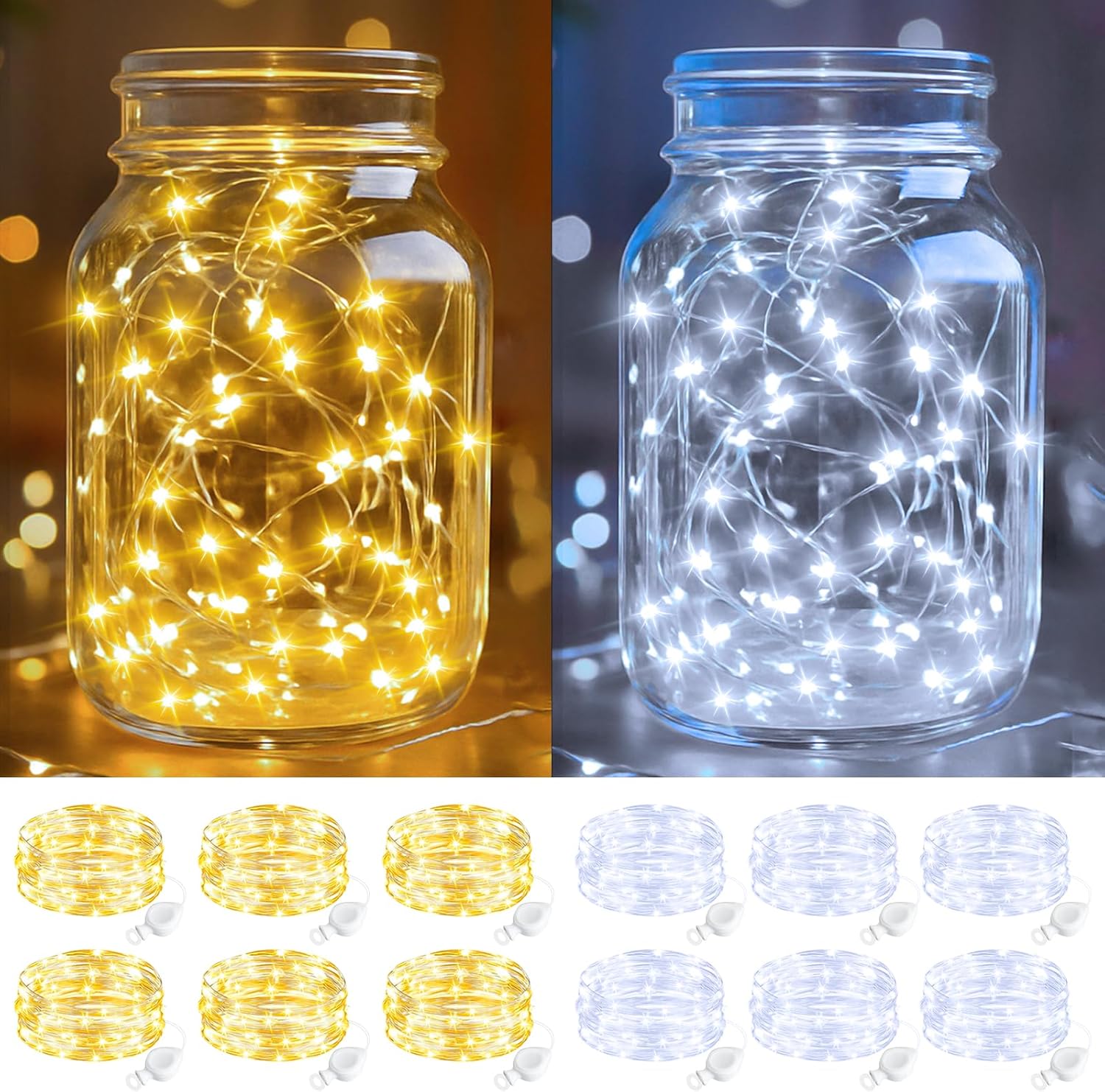 btfarm 12 Pack Fairy Lights Battery Operated, 7FT 20 LED Mini String Lights Waterproof Silver Wire for Mason Jars Centerpiece Table Crafts Bedroom Christmas Decoration, Cool-Warm White