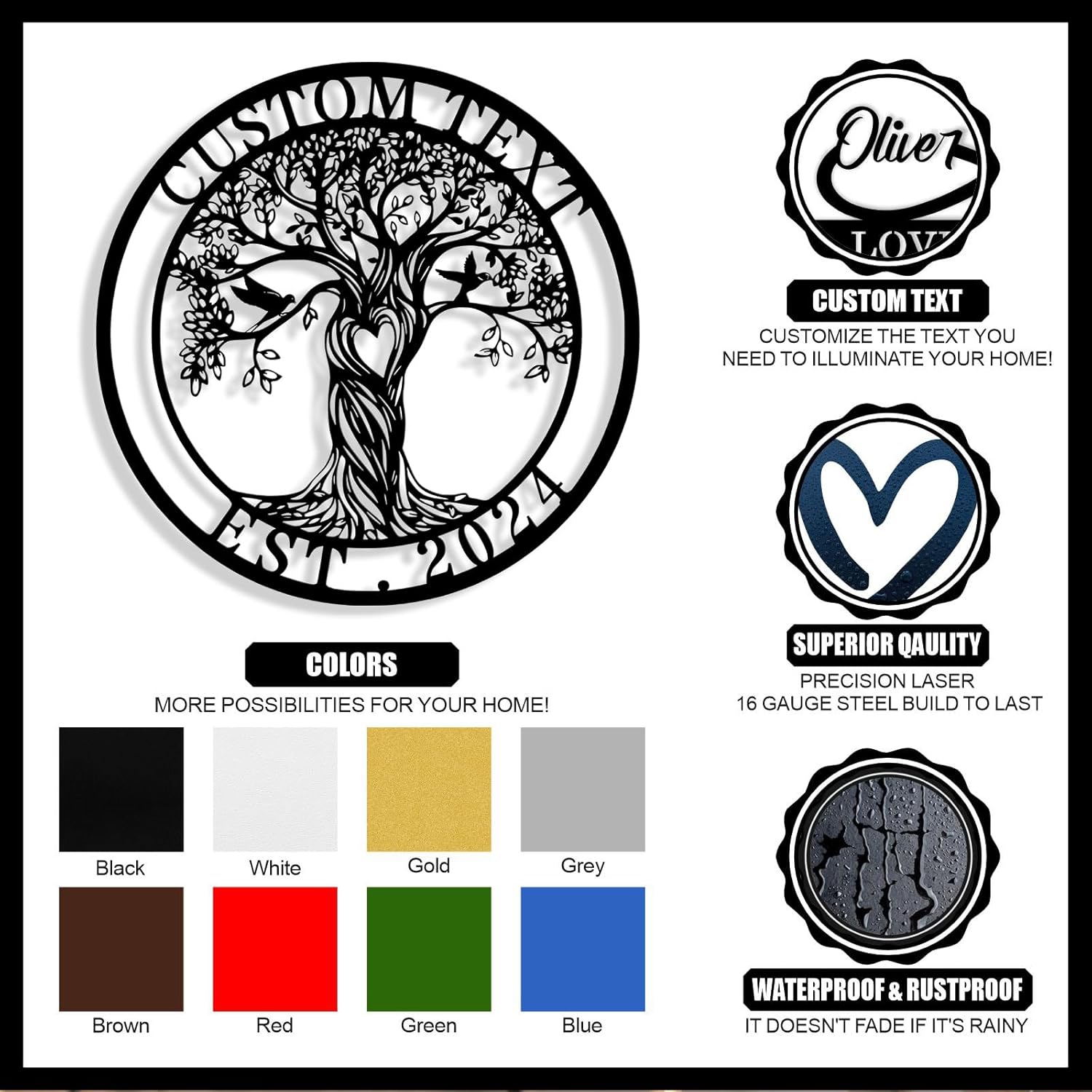 - Personalized & Name Customizable -- Click "CUSTOMIZE NOW" and enter the name or text. Our personalized Tree of Life Metal Sign designs make it unique, beautiful and elegant to create a perfect personalized family name sign for you. This custom last name sign is customized with your last name, first names and established date, will look beautiful indoor and outdoor any home.