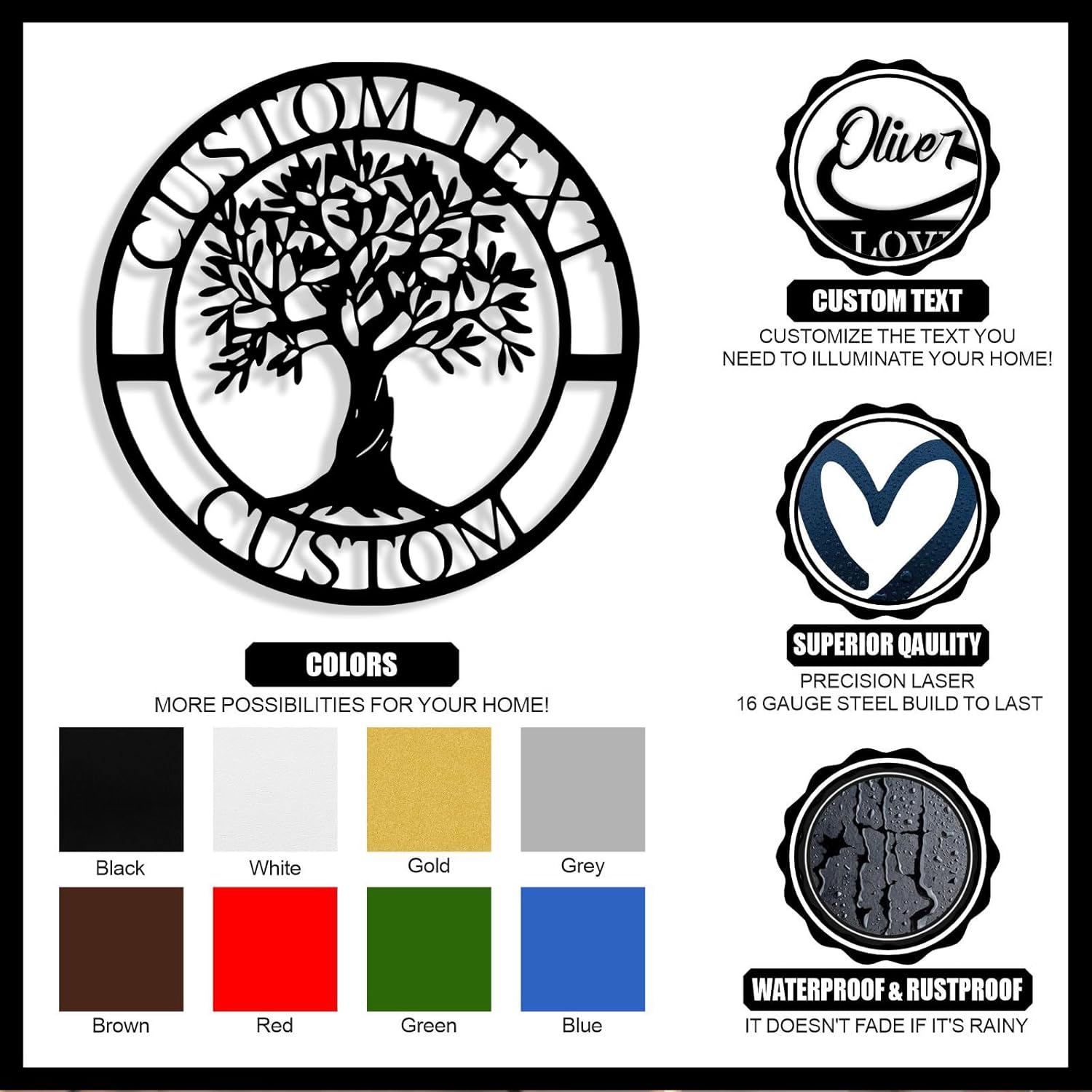 - Personalized & Name Customizable -- Click "CUSTOMIZE NOW" and enter the name or text. Our personalized Tree of Life Metal Sign designs make it unique, beautiful and elegant to create a perfect personalized family name sign for you. This custom last name sign is customized with your last name, first names and established date, will look beautiful indoor and outdoor any home.
