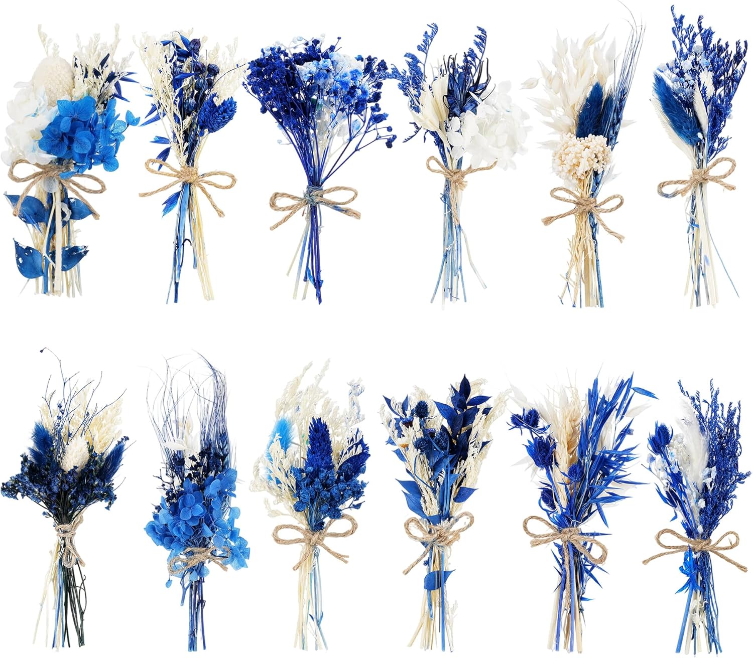 10/12/24/36 Pack Mini Dried Flowers for Vase Wedding Various Mini Bouquet Dried Small Wildflowers Natural Flowers Bulk for Crafts DIY Decor (12, Blue)