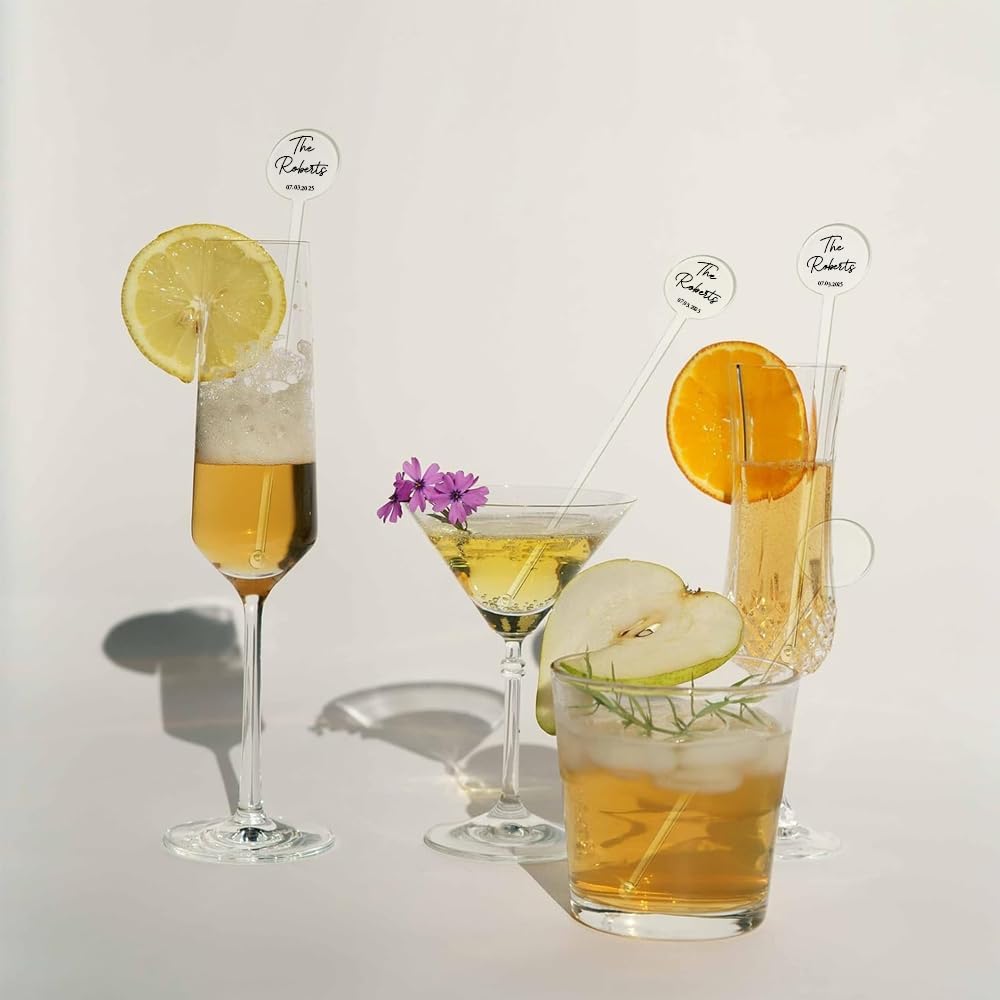Personalized Wedding Drink Stirrers, Custom Anniversary Stir Swizzle Sticks, Cocktail Bar Last Name Wedding Decorations, Customized Cocktail Stirrers 1