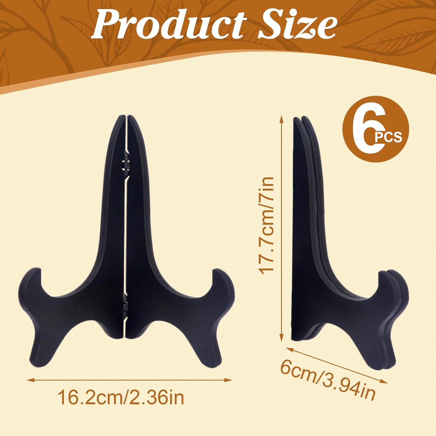 6Pcs 7 Inch Plate Stand, Small Folding Display Easels and Picture Holders for Decorative Picture Frame (Black)
