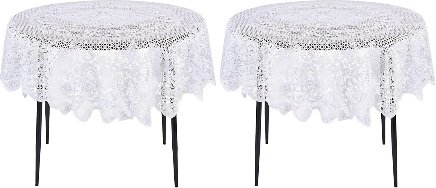 Juvale Round Lace Tablecloth - 59-Inch White Polyester - Scalloped Edge Circle Tablecloth with Floral Overlay & Vintage Decor for Wedding Receptions & Home (Pack of 2)