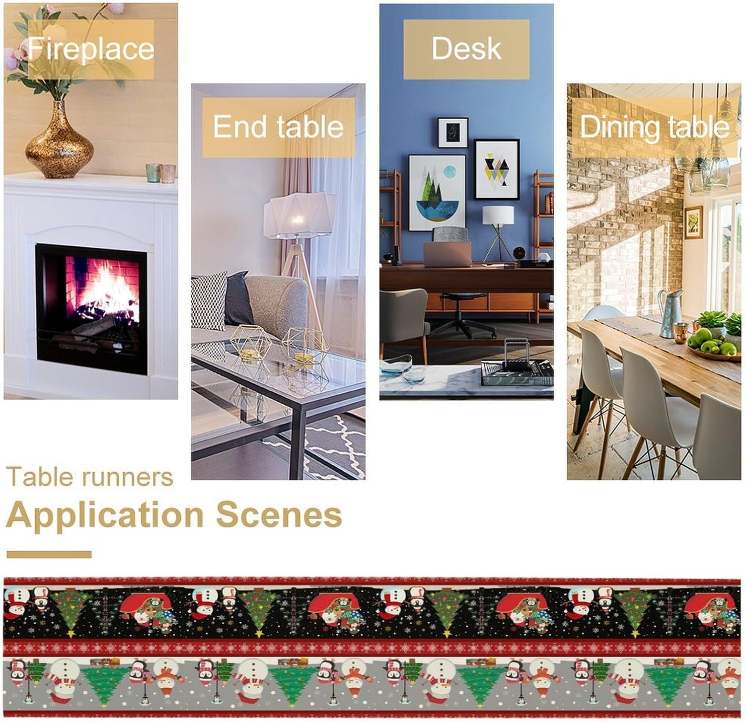 Christmas Table Runner,Cartoon Snowman Tree Xmas Deer Elk Santa Claus Print Tablecloth Burlap for Hotel Indoors Outdoor Dining Room Kitchen Home Decor,W13X L108 in