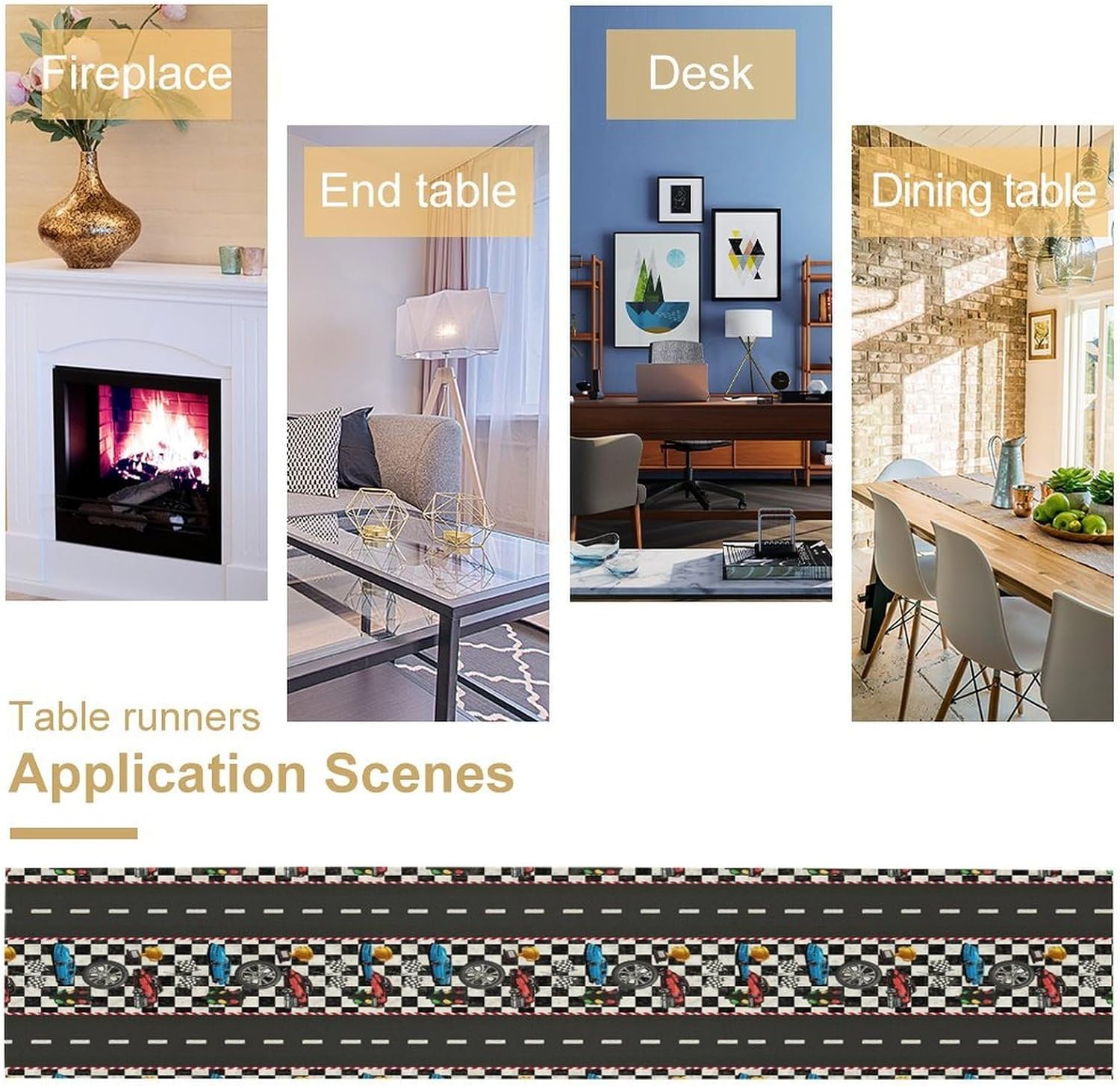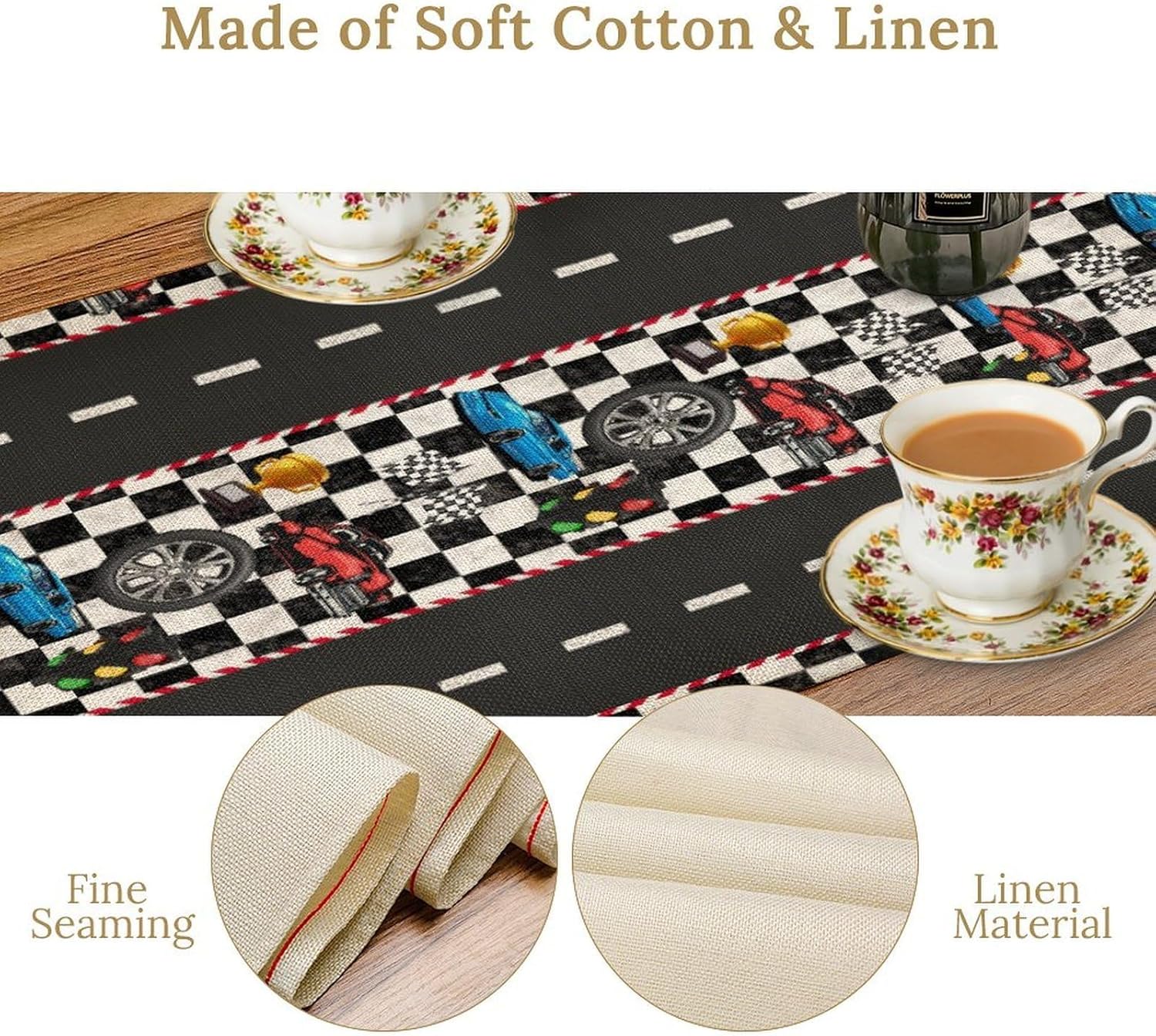 Race Car Table Runner,Checkered Flag Black and White Race Cars Pattern Print Tablecloth Burlap for Hotel Indoors Outdoor Dining Room Kitchen Home Decor,W13X L108 in