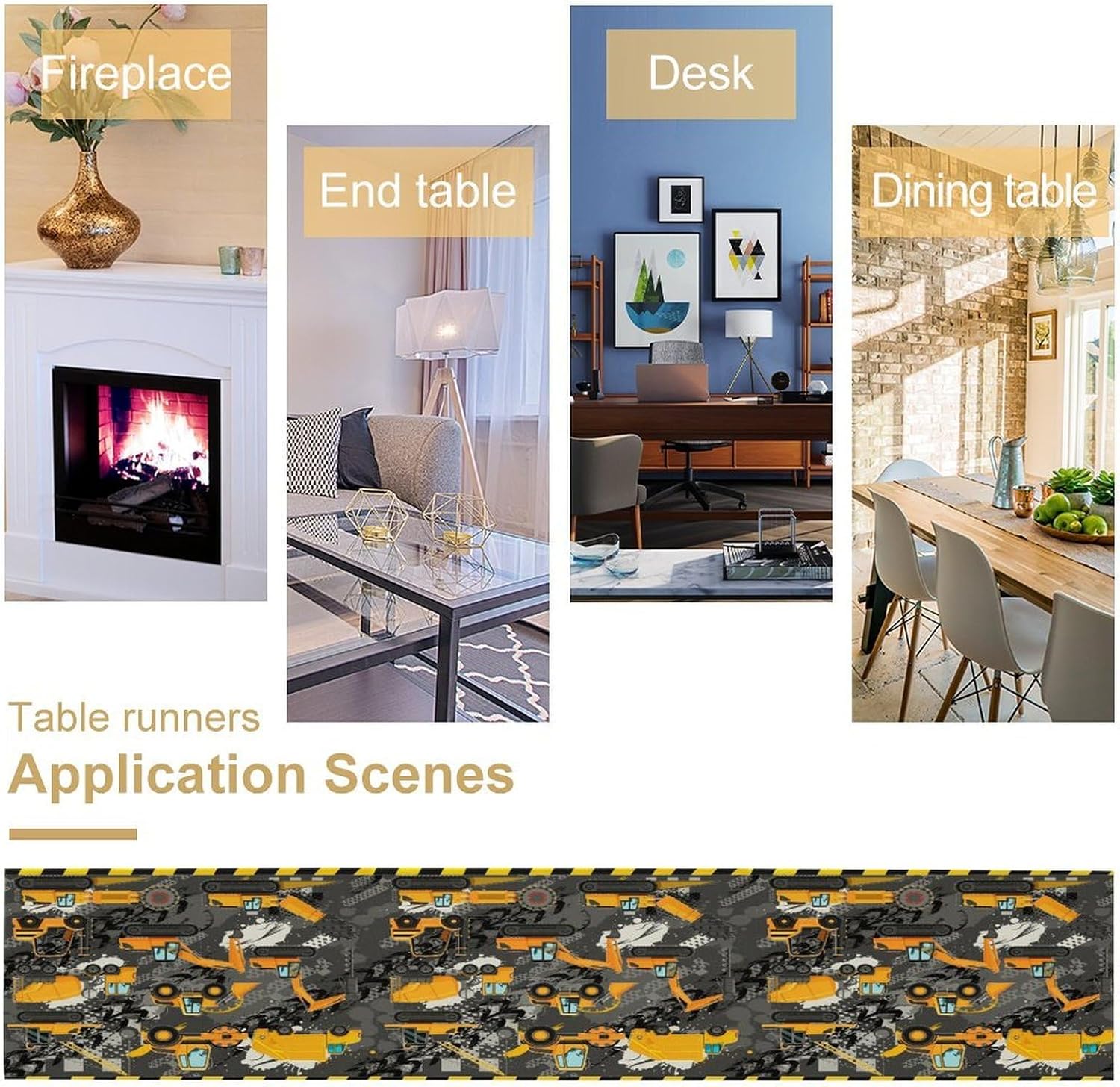 Cartoon Car Table Runner,Boy Kids Construction Yellow Tractor Excavator Tablecloth Burlap for Hotel Indoors Outdoor Dining Room Kitchen Home Decor,W13X L90 in