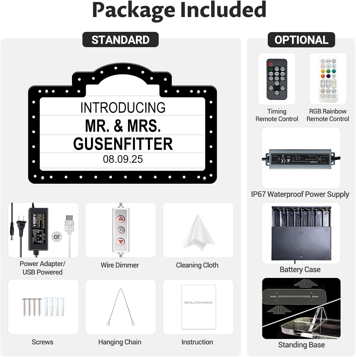 - 【Durable & Waterproof】Featuring an IP67 rating,Rebran custom marquee wedding signs is built to withstand the elements.It’s equipped with premium LEDs that emit a warm,inviting glow—making this bottle service sign ideal for garden weddings,poolside parties,or any venue where your decor needs to be both beautiful and tough enough to perform in any weather