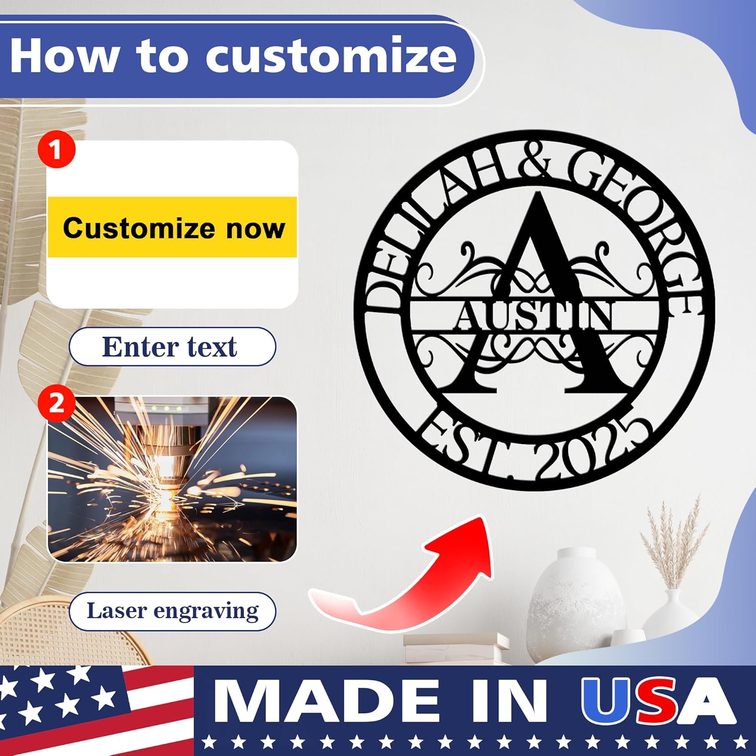 - CUSTOM MONOGRAM METAL SIGNS: Our metal signs are made in the USA, ship quickly. We offer a variety of designs and sizes to choose from. You can customize your name, last name, and anniversary date as a home decor sign, living room wall decor sign, or wedding sign. It is not only the perfect home decoration, but also an excellent way to showcase beautiful memories.