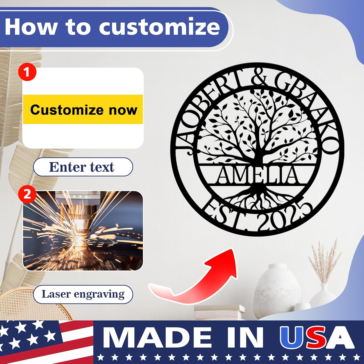 Custom Tree Of Life Metal Signs Wall Art, Personalized Family Last Name Outdoor Metal Signs, Wedding Gifts For Couple, Name Sign Customized Christmas Valentine's Day Housewarming Gifts
